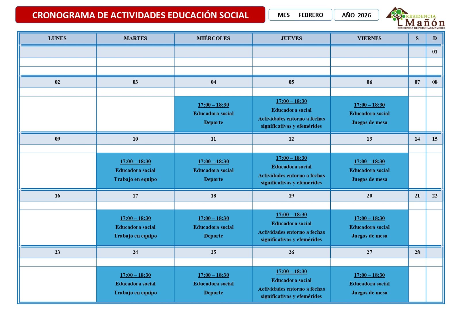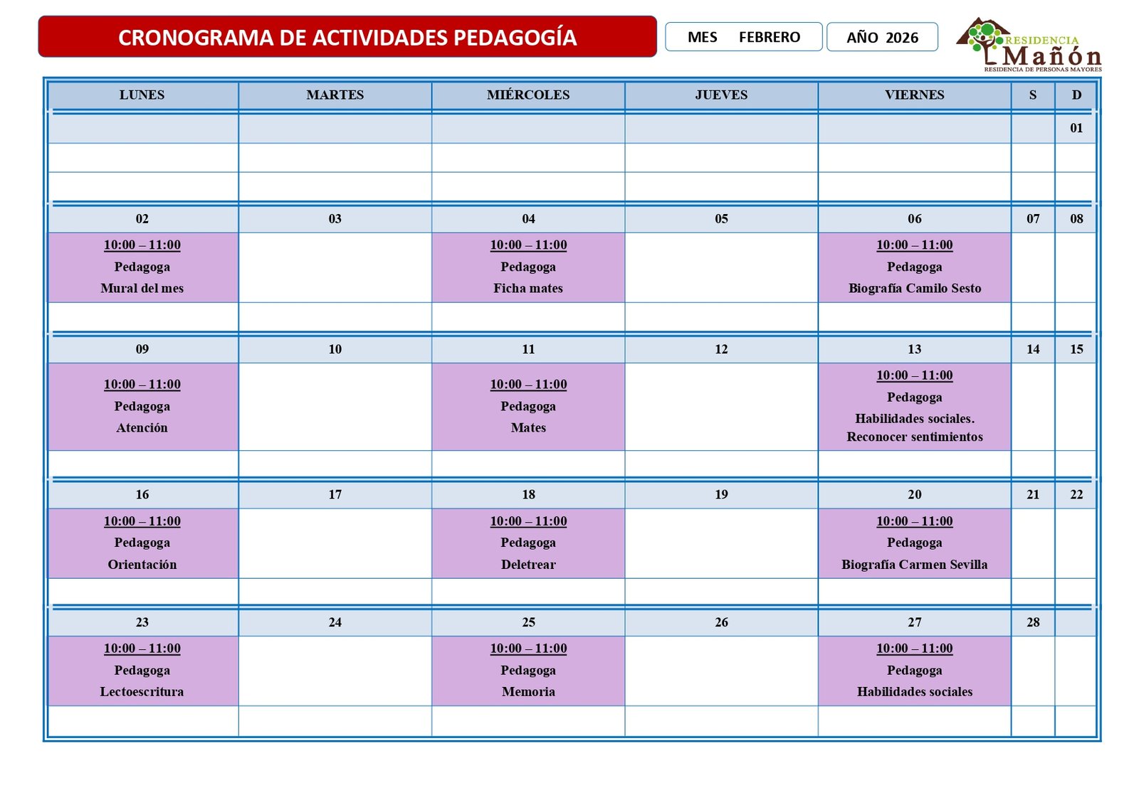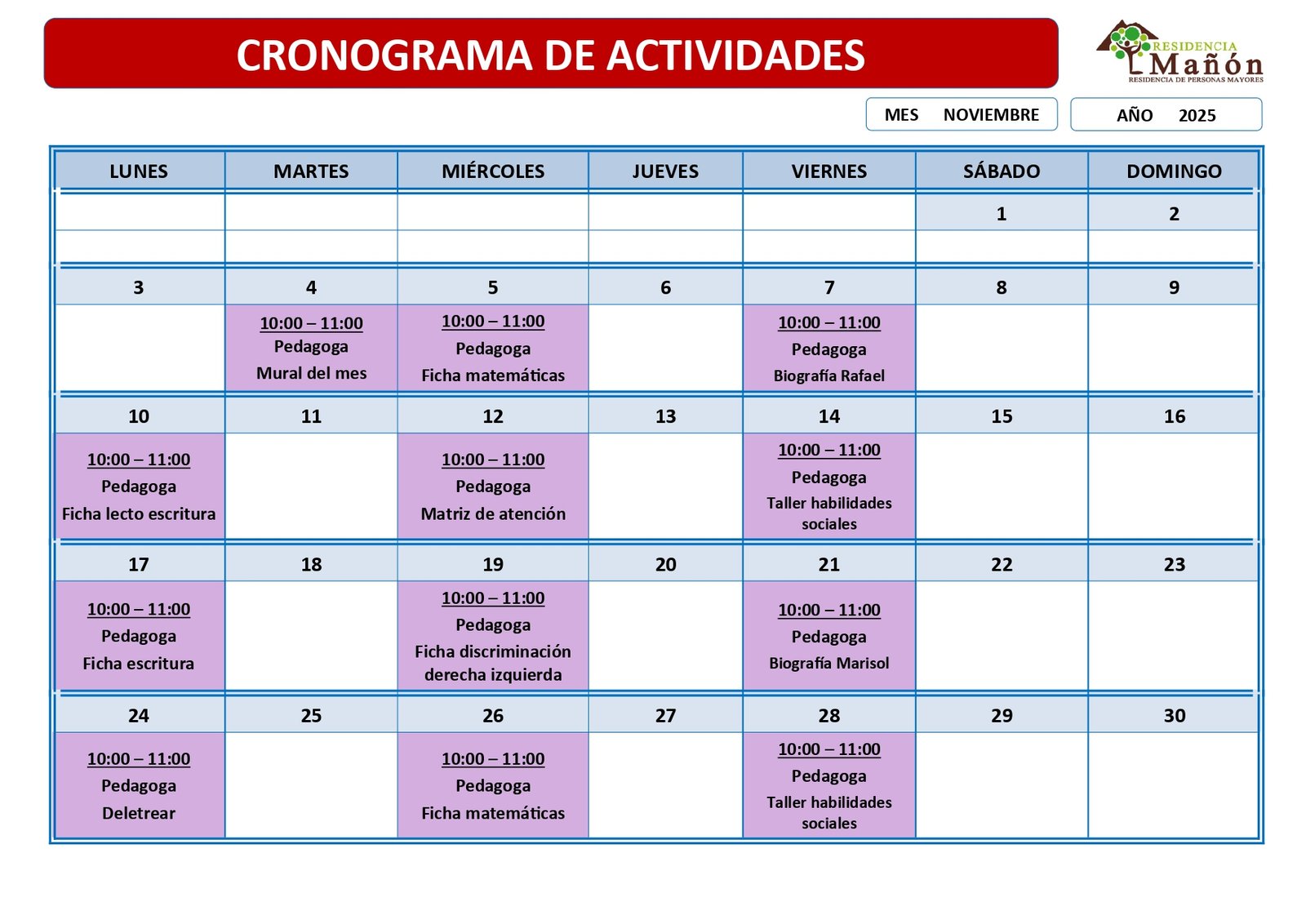 ¿Cuál es el horario de las actividades en Residencia Mañón?